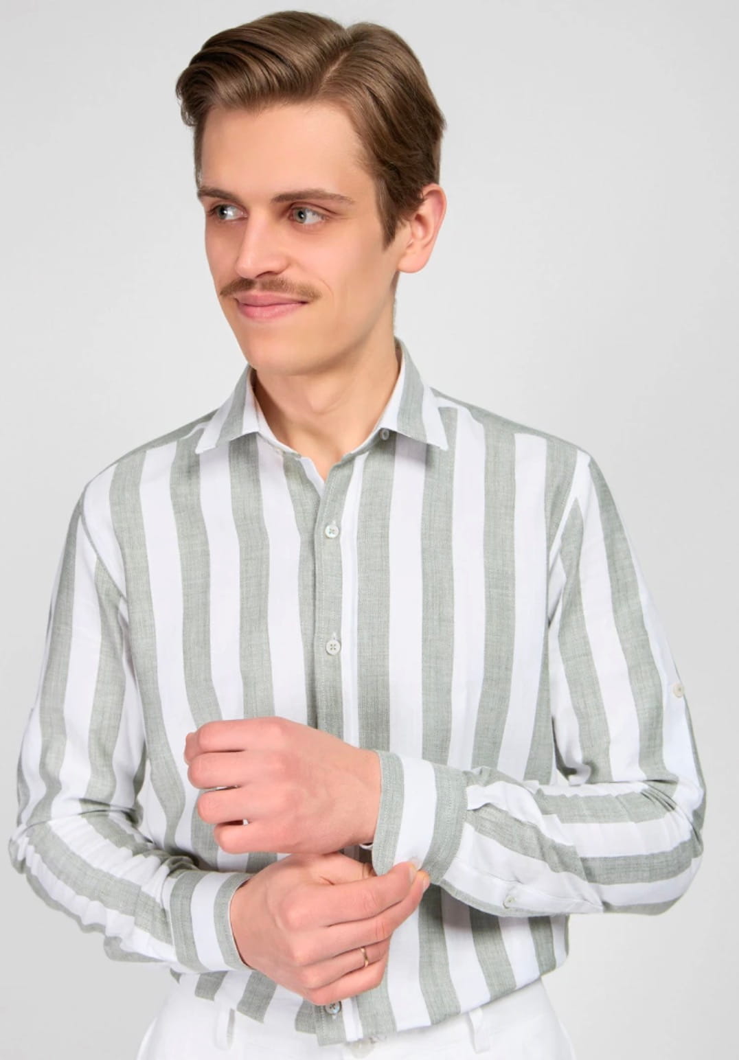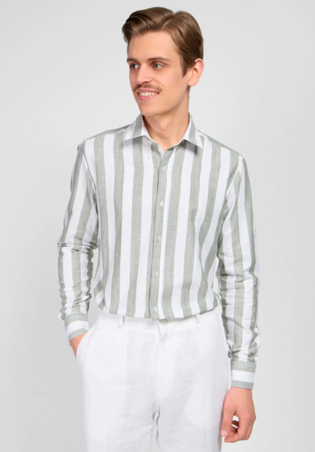 Мужская рубашка (белая с хаки) Л11 – купить в СПБ за 2 990 ₽ | В магазине DOMINO