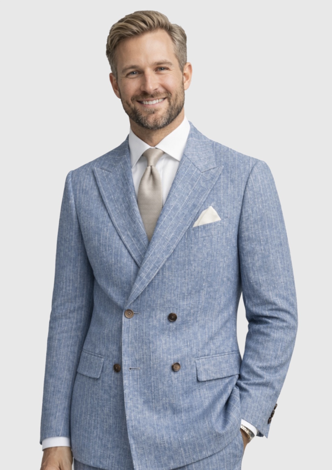 Мужской двубортный костюм (голубой) А92 – купить в СПБ за 19 990 ₽ | В магазине DOMINO