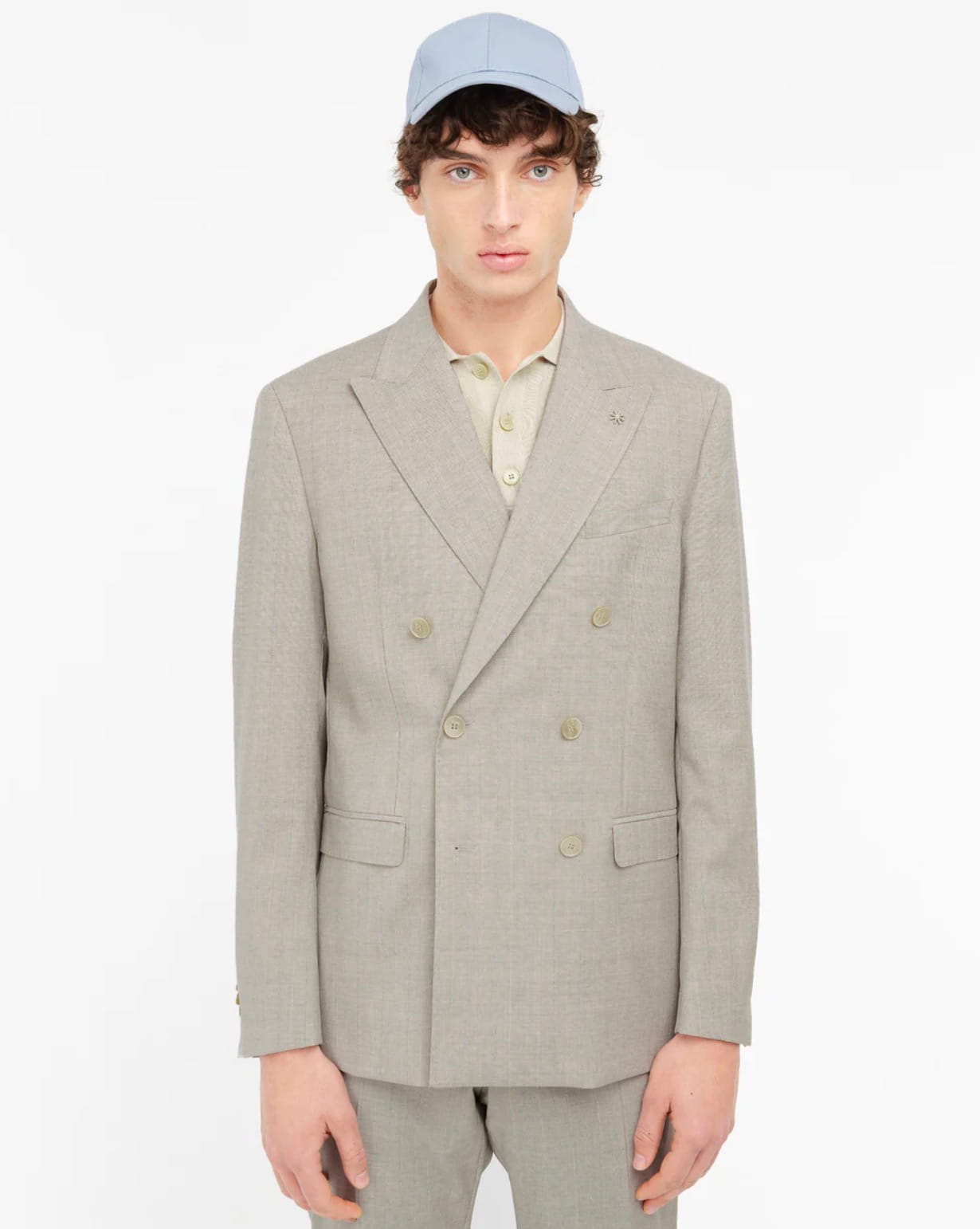 Мужской двубортный костюм (серо-бежевый) Б77 – купить в СПБ за 17 990 ₽ | В магазине DOMINO