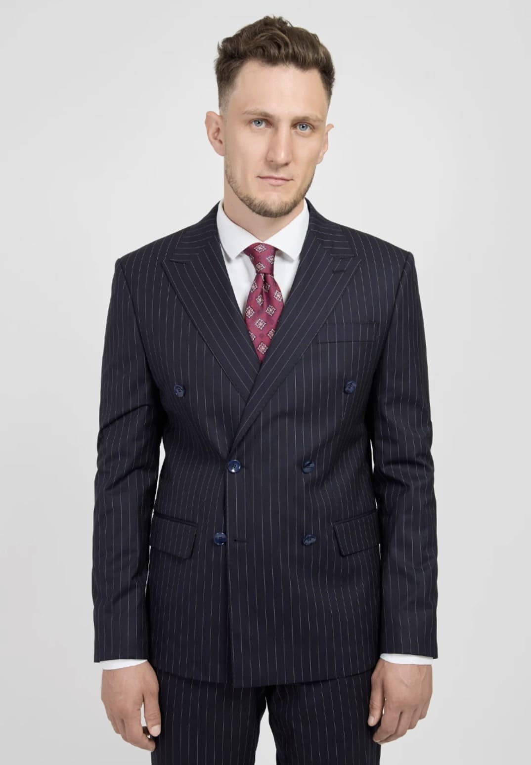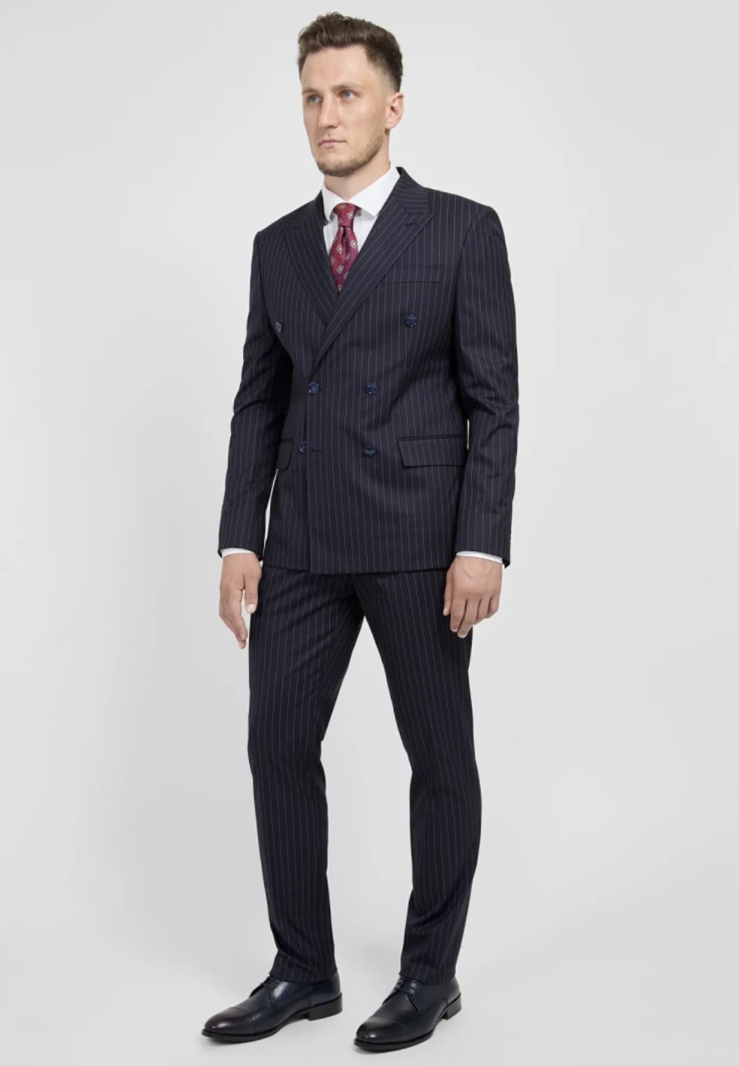 Мужской двубортный костюм в полоску (синий) А34 – купить в СПБ за 11 990 ₽ | В магазине DOMINO