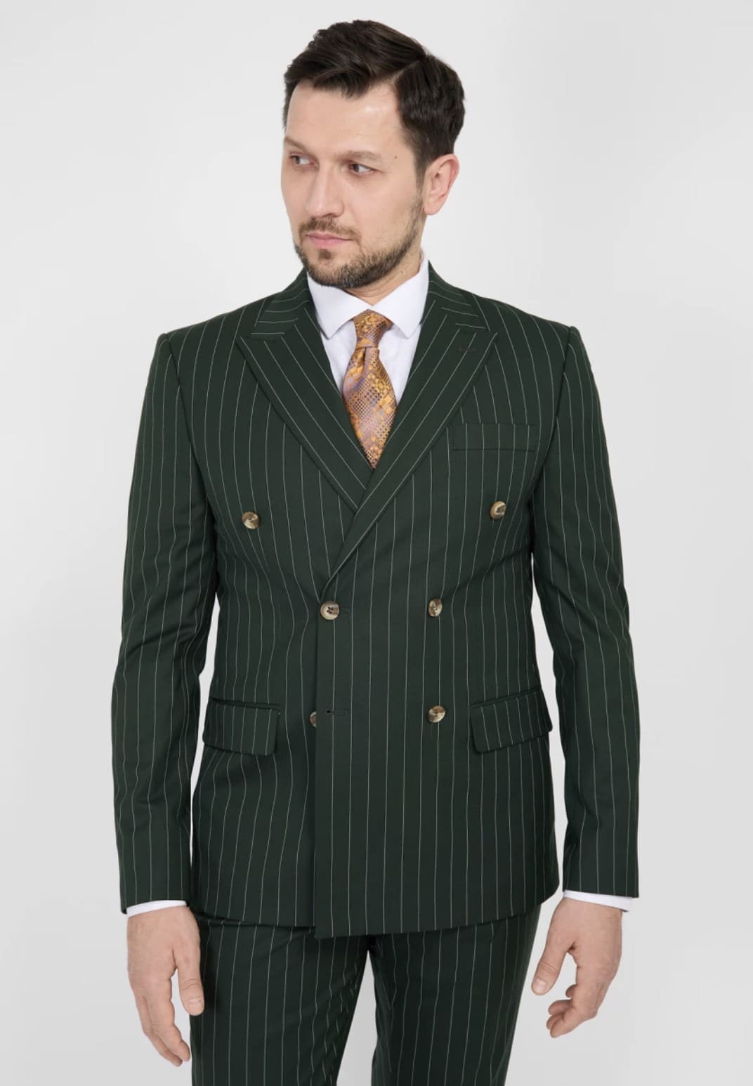 Мужской двубортный костюм (зеленый) В95