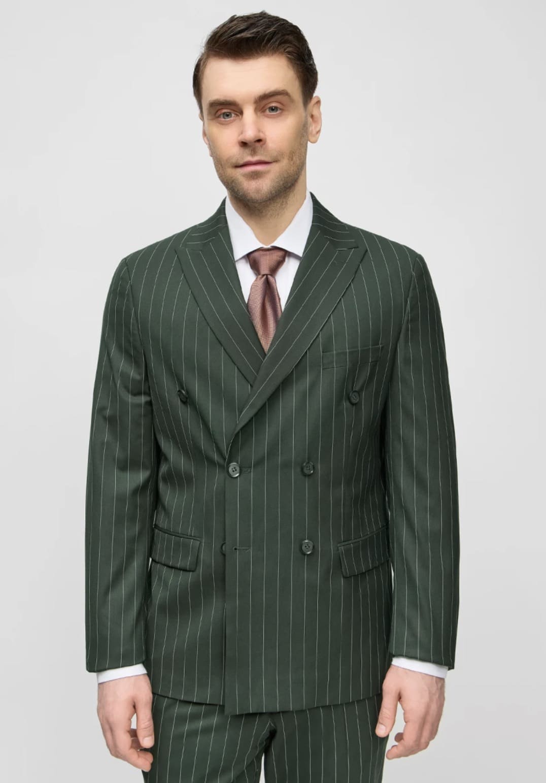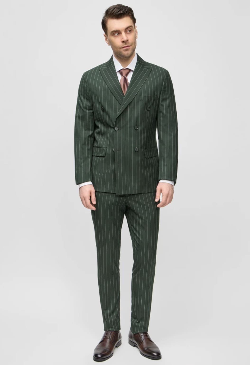 Мужской костюм двубортный в полоску (зеленый) В70 – купить в СПБ за 19 990 ₽ | В магазине DOMINO
