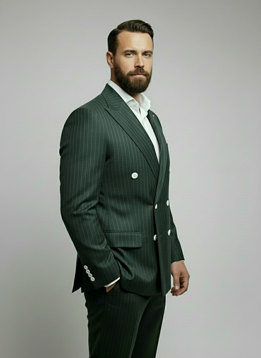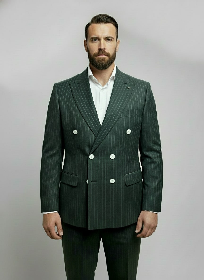 Мужской костюм двубортный (зеленый) В39 – купить в СПБ за 17 990 ₽ | В магазине DOMINO