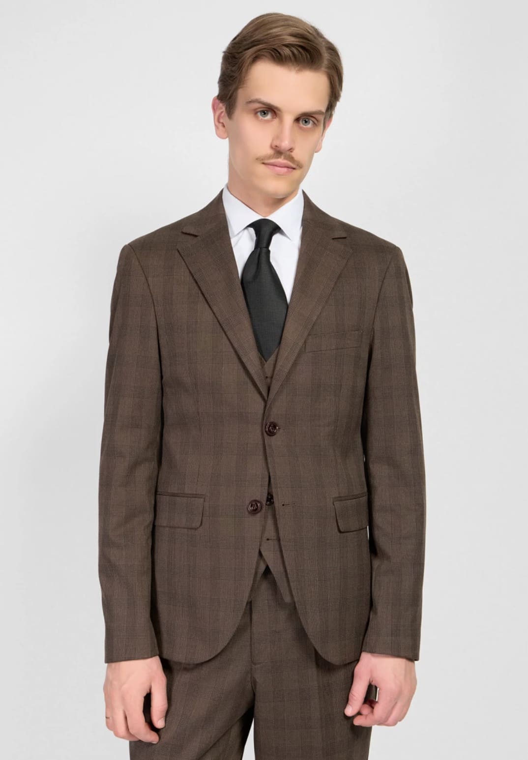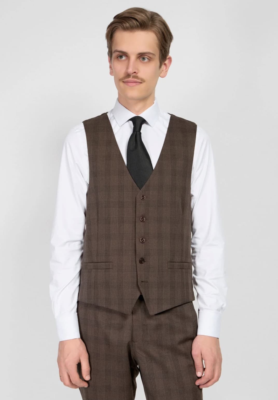 Мужской костюм тройка в клетку (коричневый) А44 – купить в СПБ за 19 990 ₽ | В магазине DOMINO