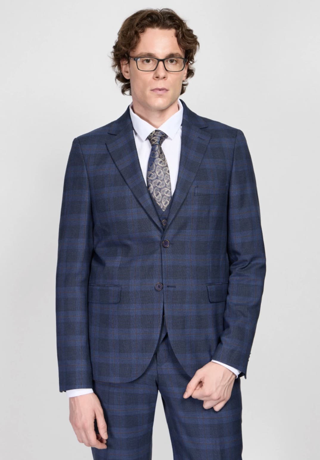 Мужской костюм тройка в клетку (синий) В88 – купить в СПБ за 19 990 ₽ | В магазине DOMINO